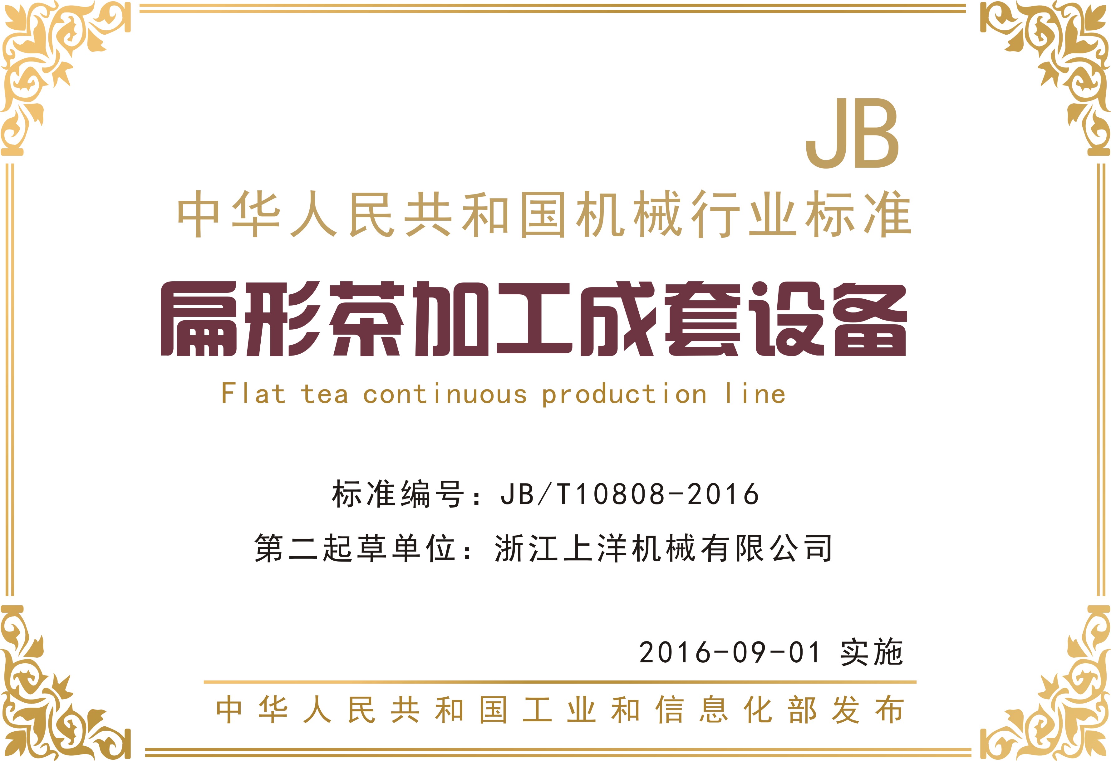 行業標準1、扁形茶葉加工成套設備-第二起草單位