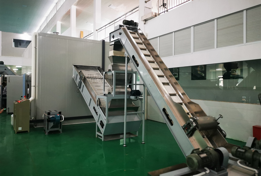 作業原理:連續發酵機可在發酵過程中實現供氧、換氣、加溫、增濕等功能,科學布局溫、濕度管道保證相對恒定的發酵環境,連續發酵機主機置於發酵箱體(房)內,設置多層輸送網帶,揉撚葉達到發酵要求後,自動流出到下個環節。