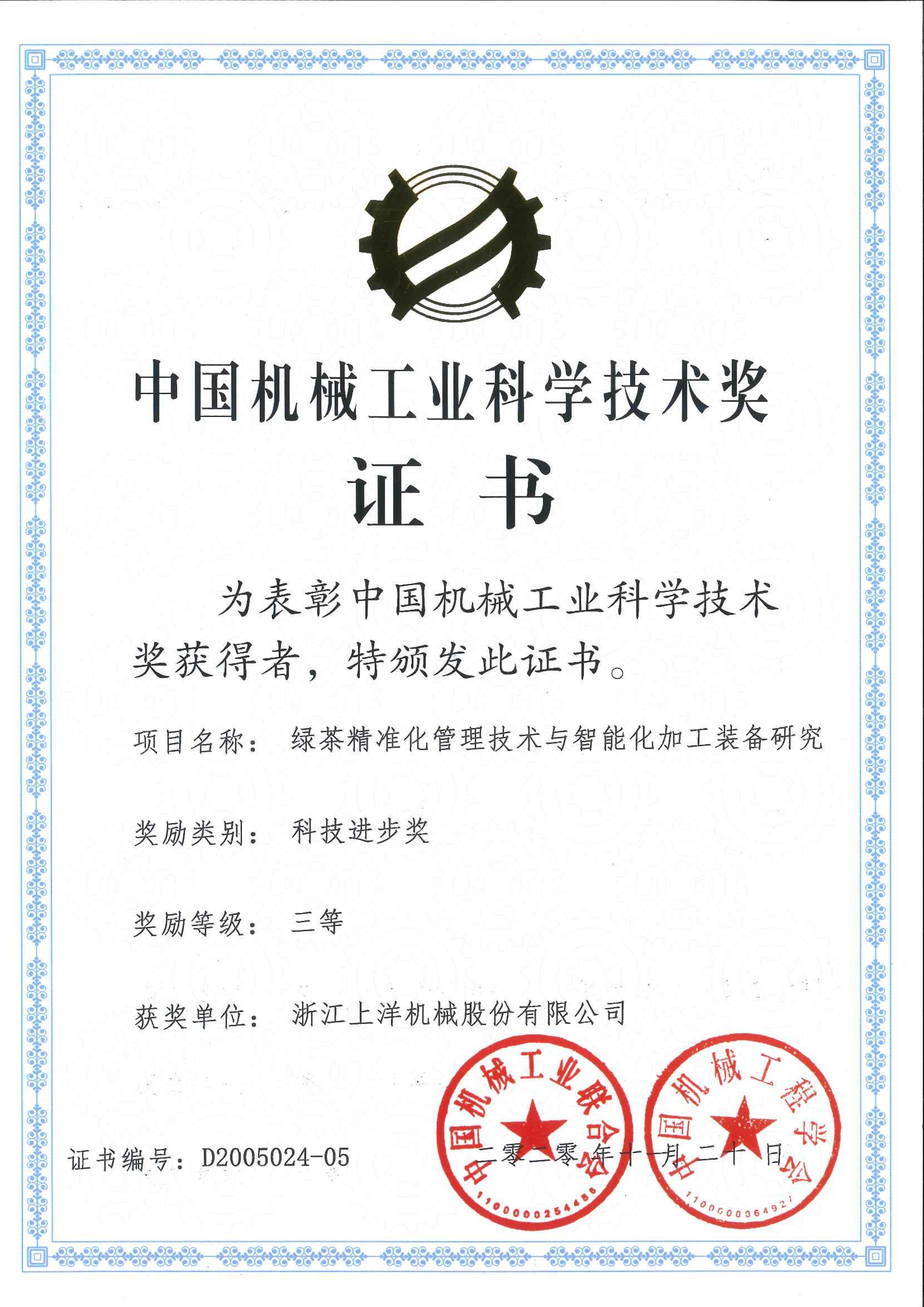 2020年中國機械工業科技進步三等獎
