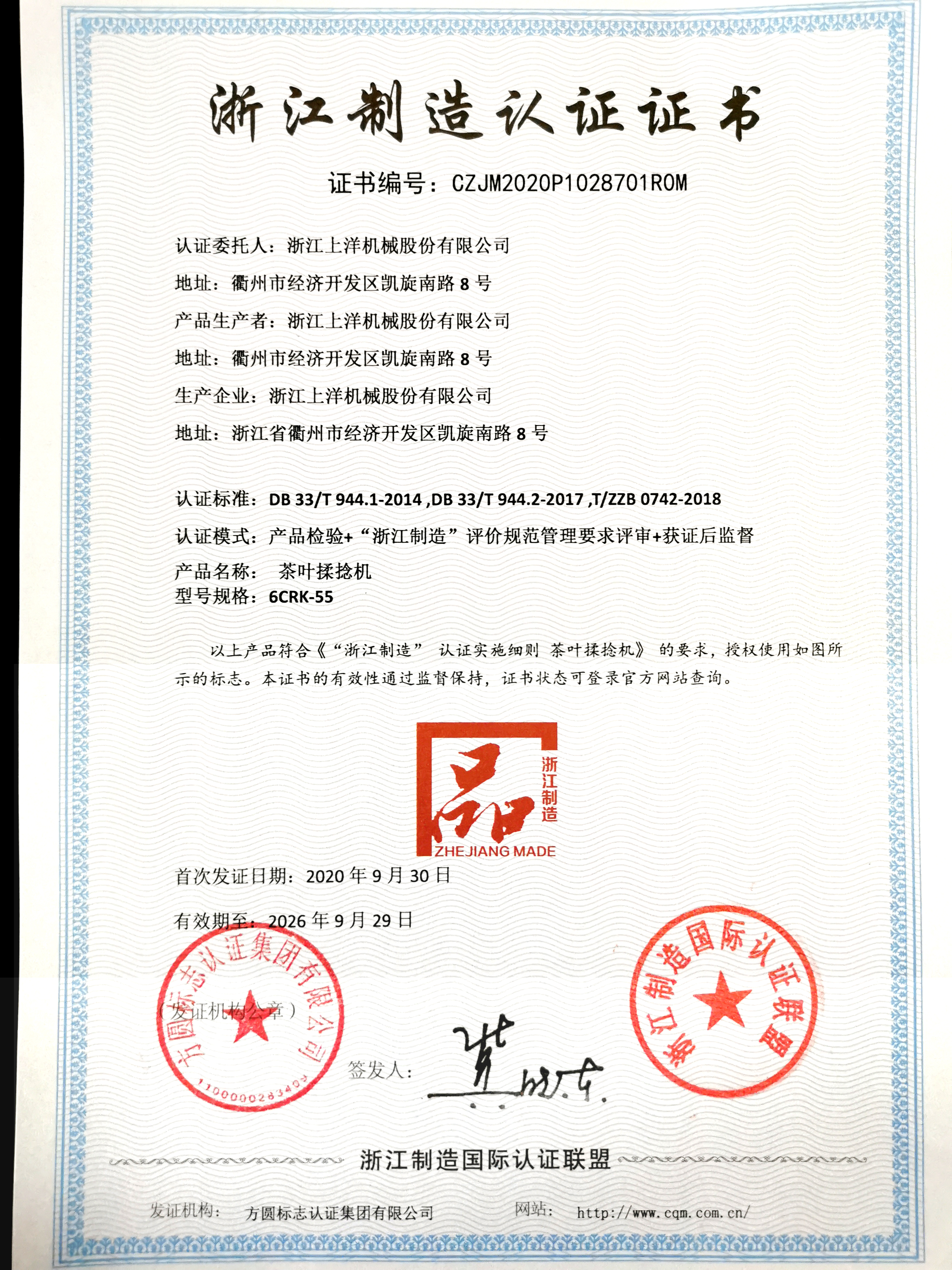 2020年數字化品控綠茶生產線榮登浙江製造精品榜單